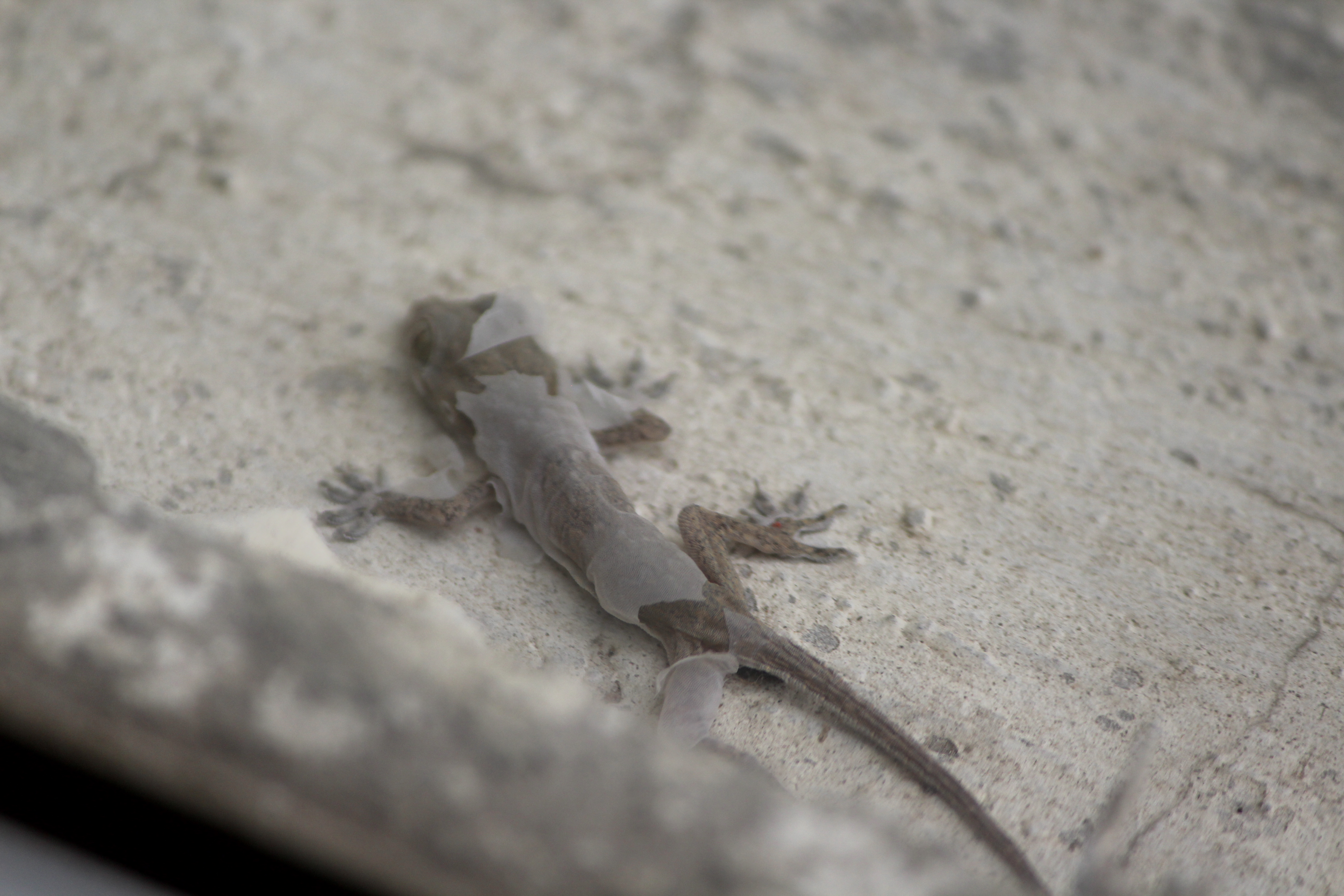 But once I threw out the lizard it struck me that it looked different from the run-of-the-mill lizards am unfortunate enough to spy and I looked closely and found it molting.