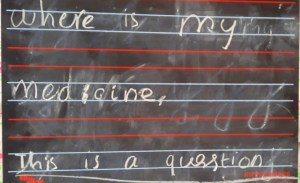A sulky and solemn-faced child informed me he couldn’t ask his father since he wasn’t talking to him. It was too early in the day for me to intervene so I told him to write out whatever he needed to communicate and he did. Only thing being that he was asking a question without there being a question mark and I asked him how would Red know that it was a query. I got my answer in 2 seconds.