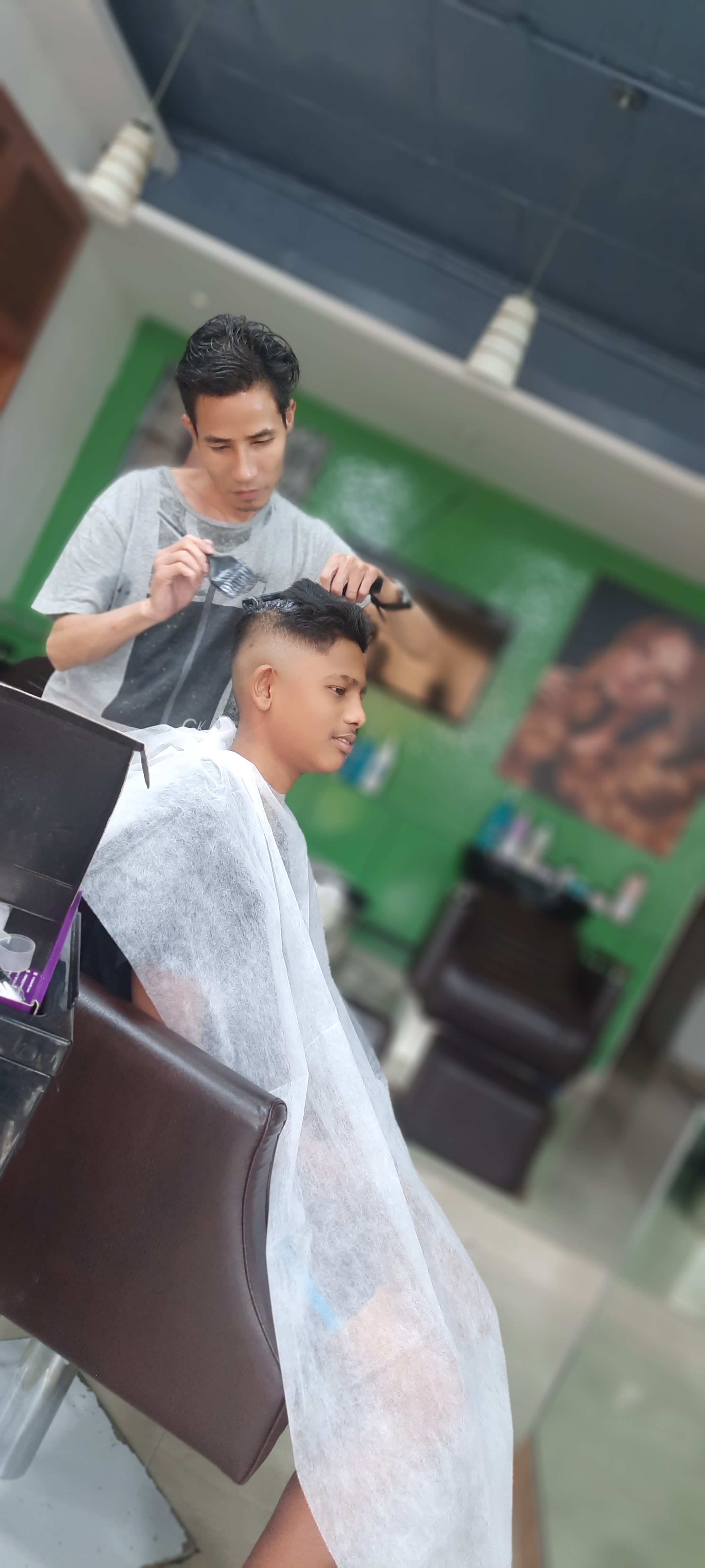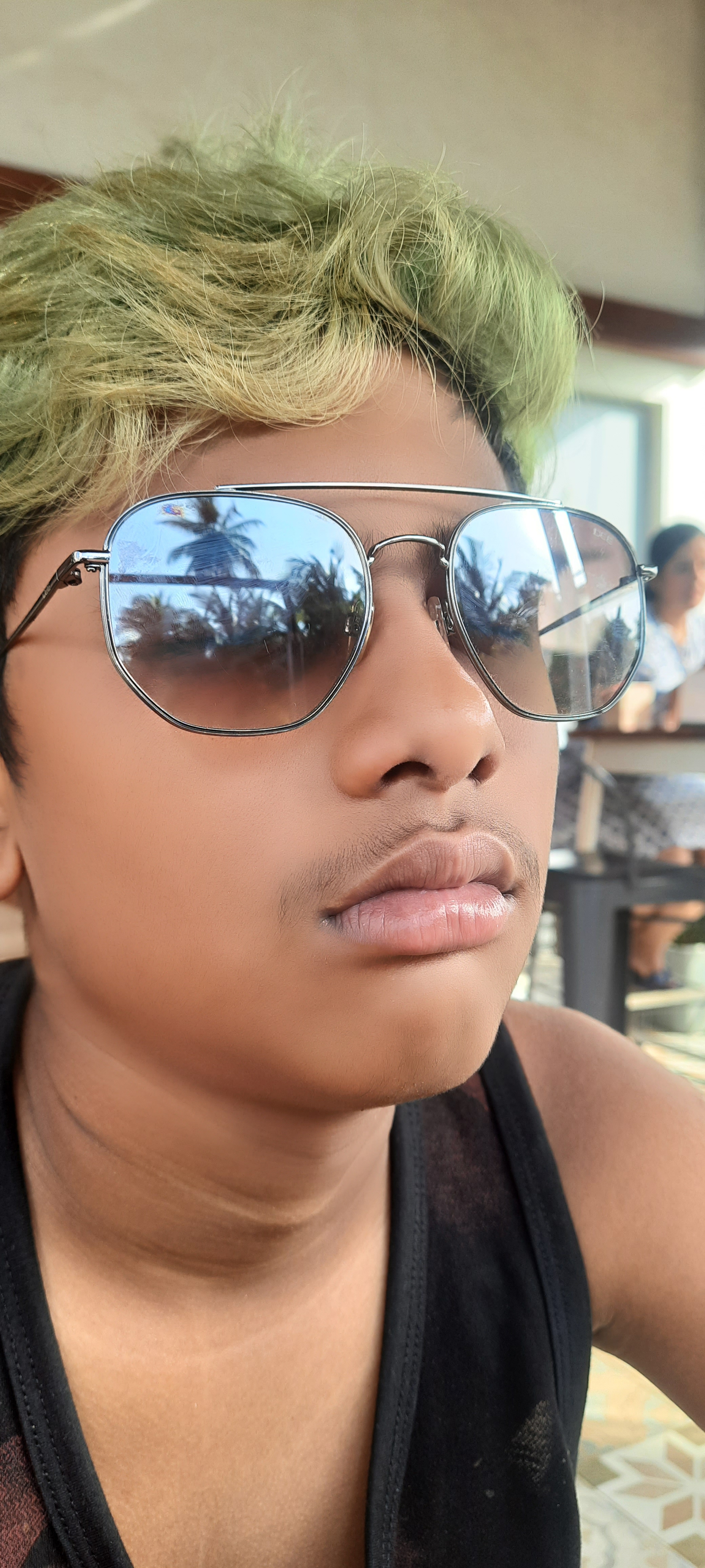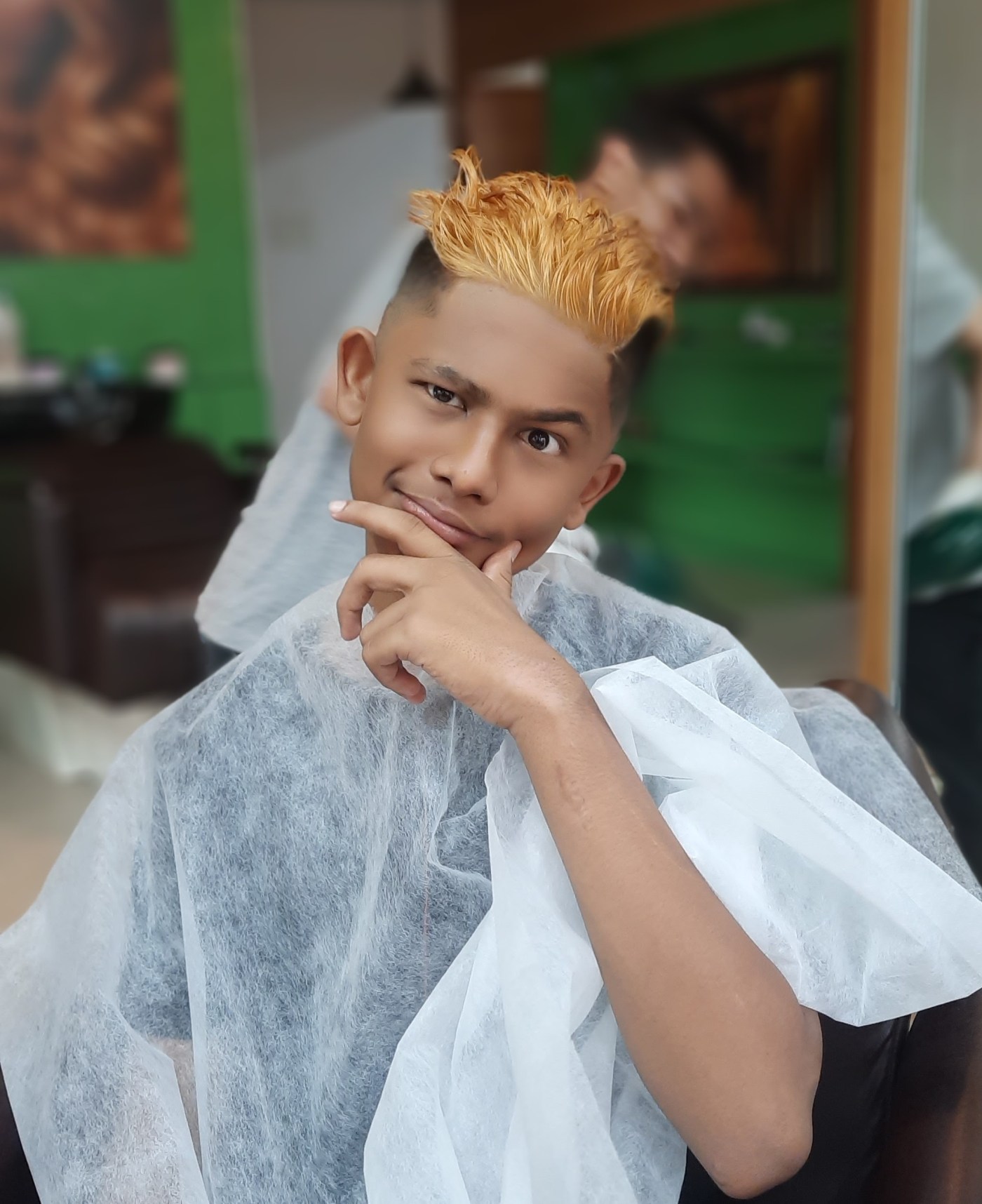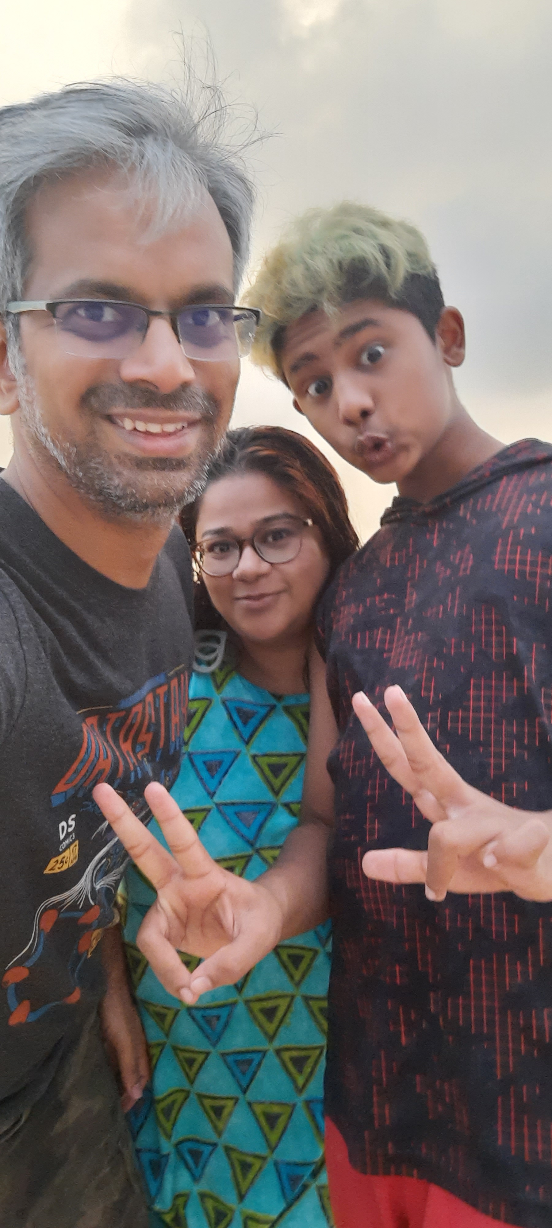 This is how it all went down: existing hair was cut into semi-mohawk/flat top in the style of Shimron Hetmyer followed by bleaching (not a huge fan as it turned out) and dyeing. After the dyeing it was a few days of strutting like a peacock till an encounter with a non-color-protect shampoo turned blue into a deep green. Surf, sun and sand bleached said green till it became light mintish; almost white at first glance. Finally, in deference to the school rules about grooming, a buzz cut ensued which replaced all the green. For now.