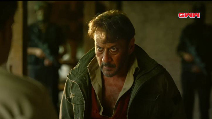 Jackie Shroff gets to don a pathan suit+eyeliner and is completely unconvincing as the erstwhile baddie who’s set upon revenge.